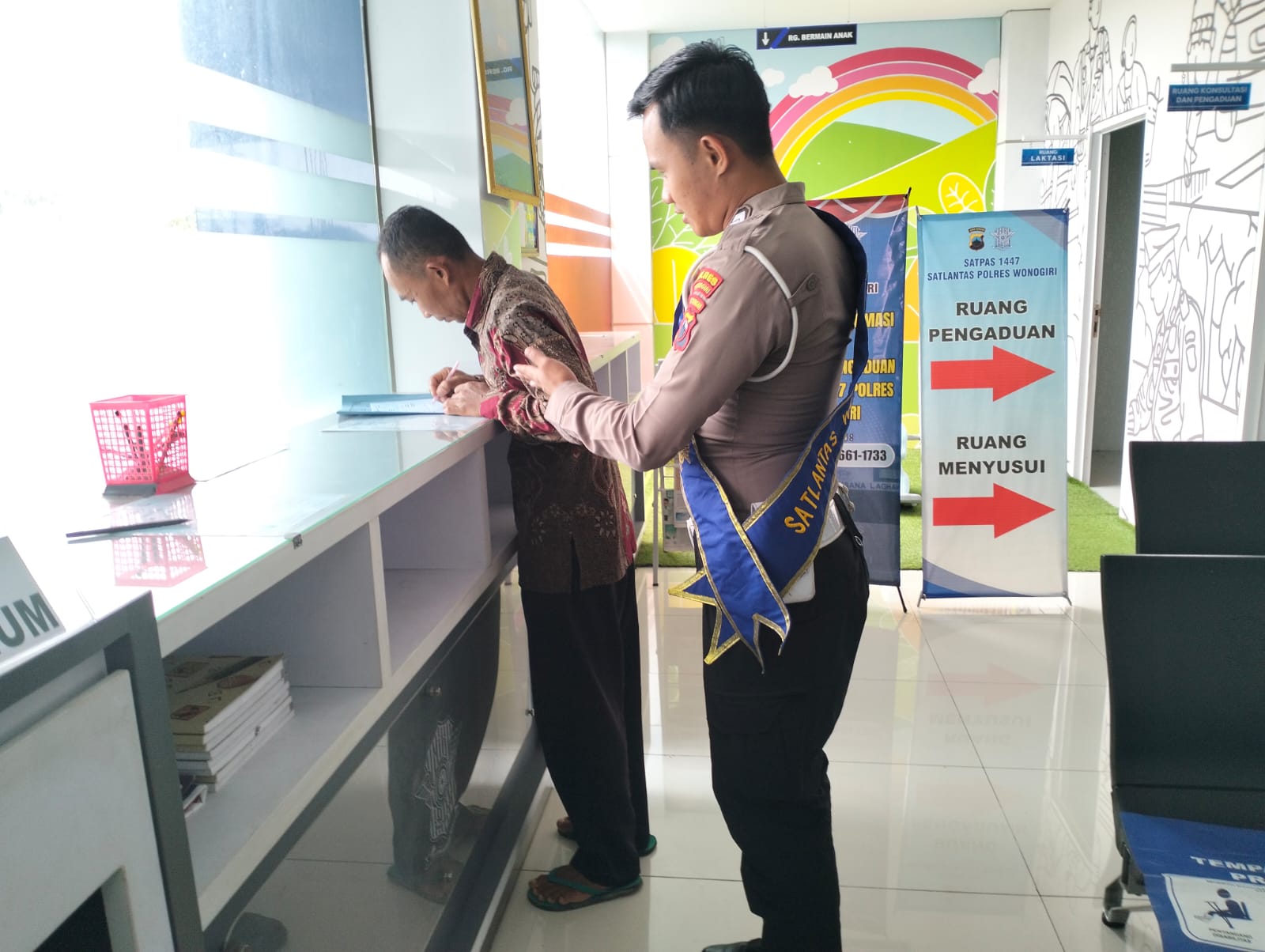 Wonogiri – Dalam upaya meningkatkan kualitas pelayanan publik, anggota Satuan Lalu Lintas (Satlantas) Polres Wonogiri, Briptu Fajar, memberikan sosialisasi kepada pemohon Surat Izin Mengemudi (SIM) di ruang pendaftaran Satpas Polres Wonogiri, Senin (27/10/2025) pukul 08.30 WIB.