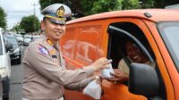 Sat Lantas Polres Wonogiri Bagi 250 Takjil di Simpang Ponten, Sambil Edukasi Tertib Lalu Lintas