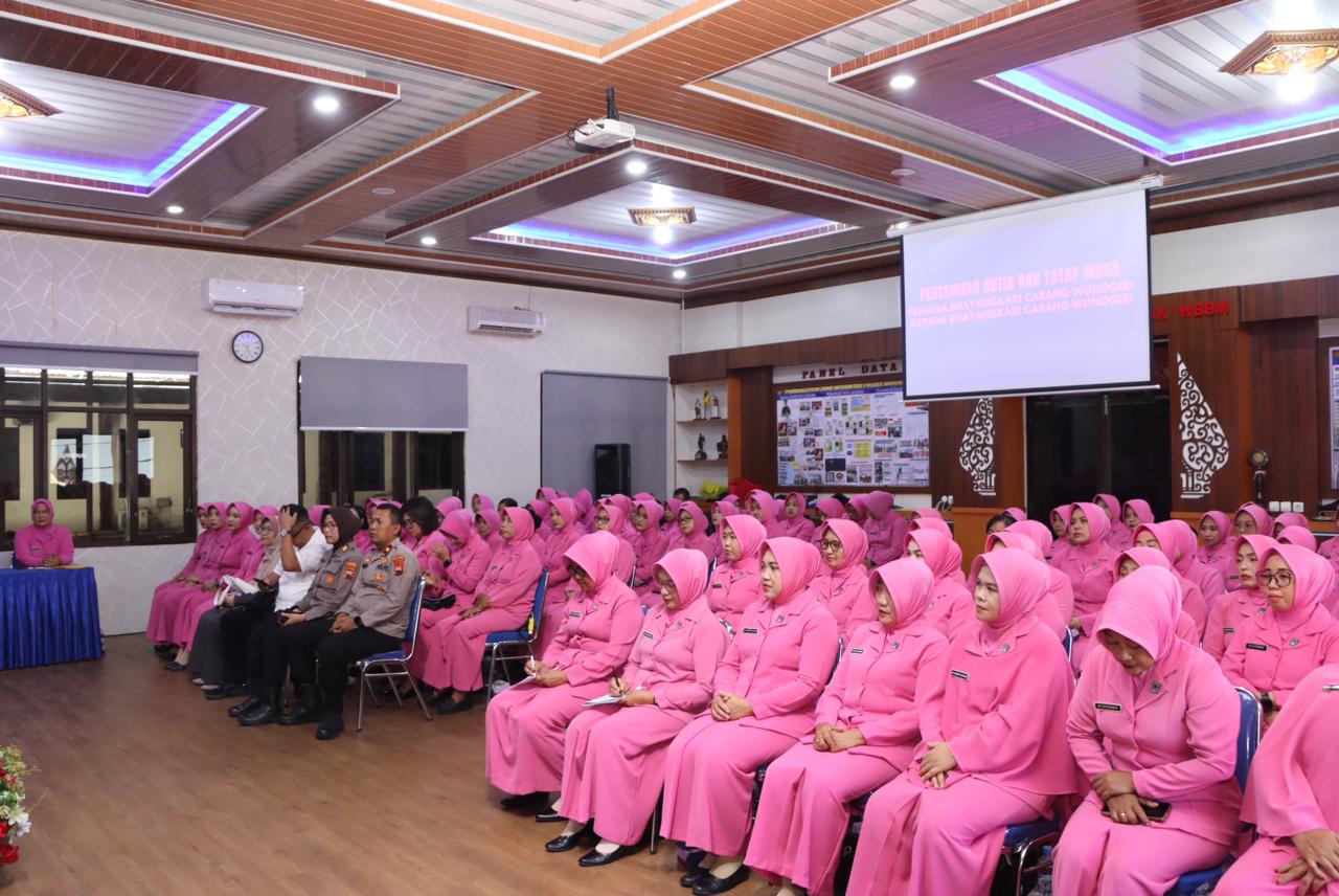Wonogiri – Dalam upaya mempererat silaturahmi dan meningkatkan peran Bhayangkari dalam mendukung tugas-tugas kepolisian, Polres Wonogiri menggelar kegiatan Tatap Muka Pembina Bhayangkari dan Pertemuan Rutin Bhayangkari Cabang Wonogiri, Selasa (14/10/2025) bertempat di Aula Sanika Satyawada Polres Wonogiri.