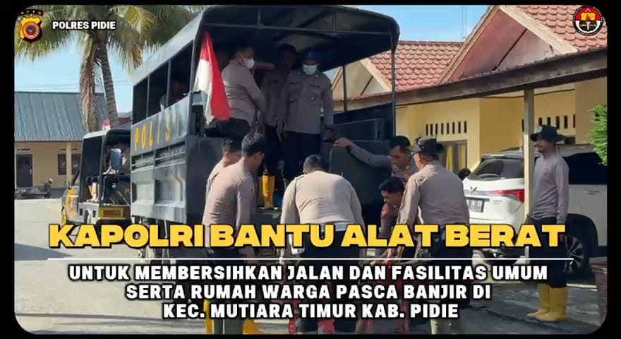 Bantuan dari Kapolri tersebut berupa dua unit alat berat, yakni satu unit wheel loader dan satu unit excavator, serta dua unit mobil dump truck. Alat-alat tersebut dikerahkan oleh Polres Pidie melalui Posko Tanggap Darurat Bencana untuk membersihkan fasilitas umum dan rumah warga serta gundukan tanah dan lumpur yang menutupi badan Jalan di Gampong Jojo menuju Gampong Tiba Mesjid Kecamatan Mutiara Timur.