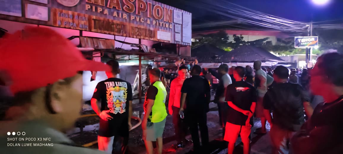 Wonogiri – Kebakaran hebat melanda deretan toko di kawasan Eks Stasiun Baturetno, tepatnya di barat Pasar Bung Karno, Kecamatan Baturetno, Kabupaten Wonogiri, pada Selasa (17/3/2026) malam sekitar pukul 20.00 WIB. Peristiwa ini menghanguskan sedikitnya tujuh unit usaha milik warga.