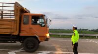*Polda Jateng Lakukan Penyekatan Kendaraan Sumbu Tiga di Exit Tol Gandulan Pemalang*