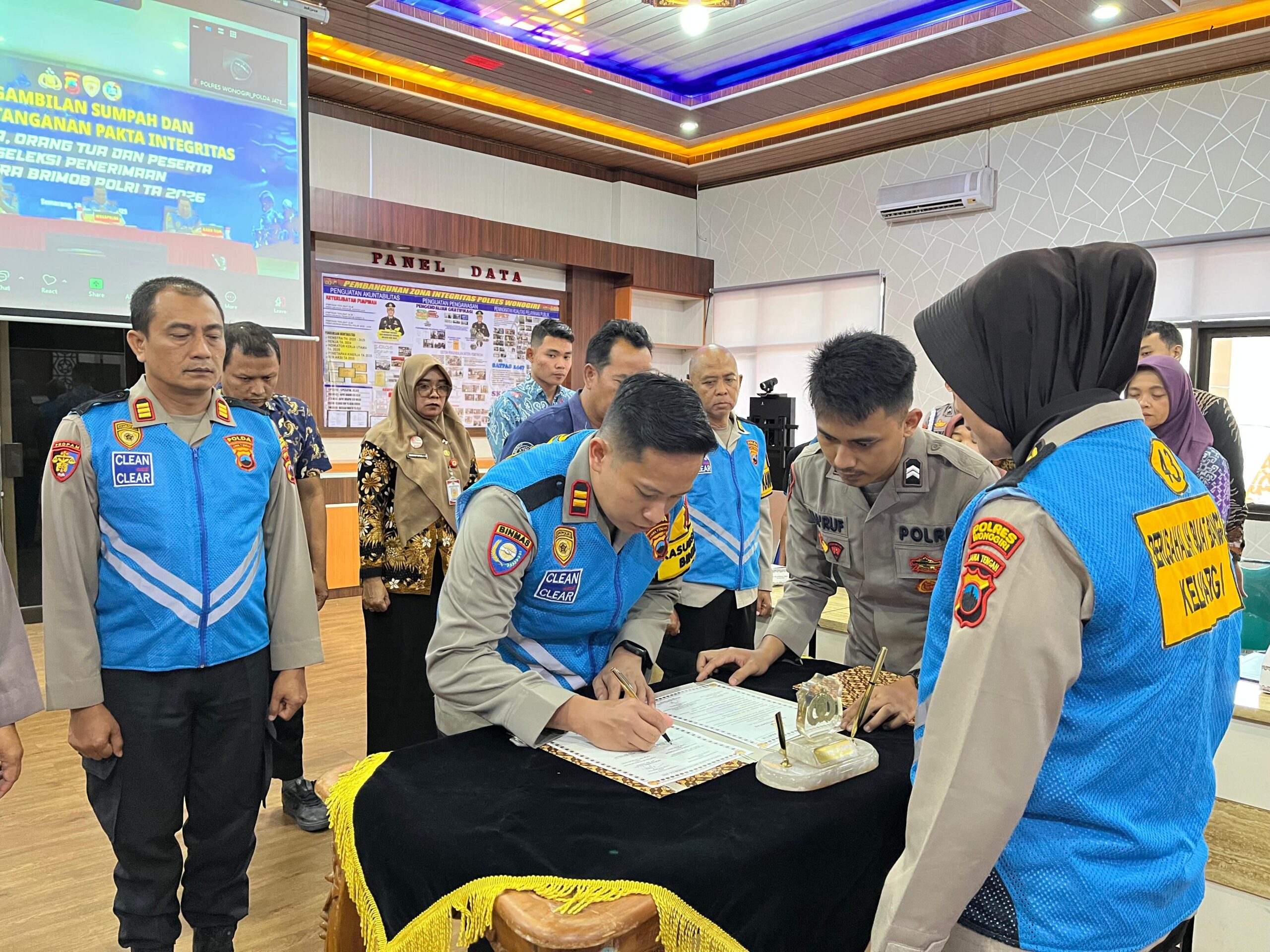Wonogiri – Polres Wonogiri menggelar kegiatan Pengambilan Sumpah dan Penandatanganan Pakta Integritas bagi peserta Penerimaan Bintara Brimob Polri Tahun Anggaran 2026 di Aula Sanika Satyawada, Kamis (20/11/2025). Agenda tersebut menjadi salah satu tahapan penting untuk memastikan proses rekrutmen berjalan objektif, transparan, dan bebas dari praktik penyimpangan.
