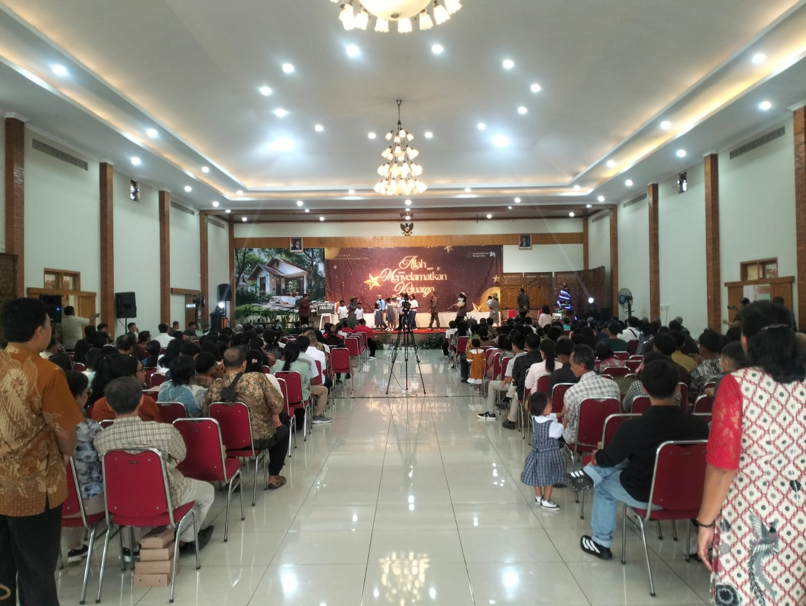 Wonogiri – Perayaan Natal bersama Tahun 2025 yang diselenggarakan oleh Gereja Kristen Jawa Wilayah Utara (GKJWU) Wonogiri berlangsung aman dan kondusif. Kegiatan tersebut digelar di Gedung Sasono Mulyo, Kelurahan Kaliancar, Kecamatan Selogiri, Kabupaten Wonogiri, Kamis (25/12/2025) sore.