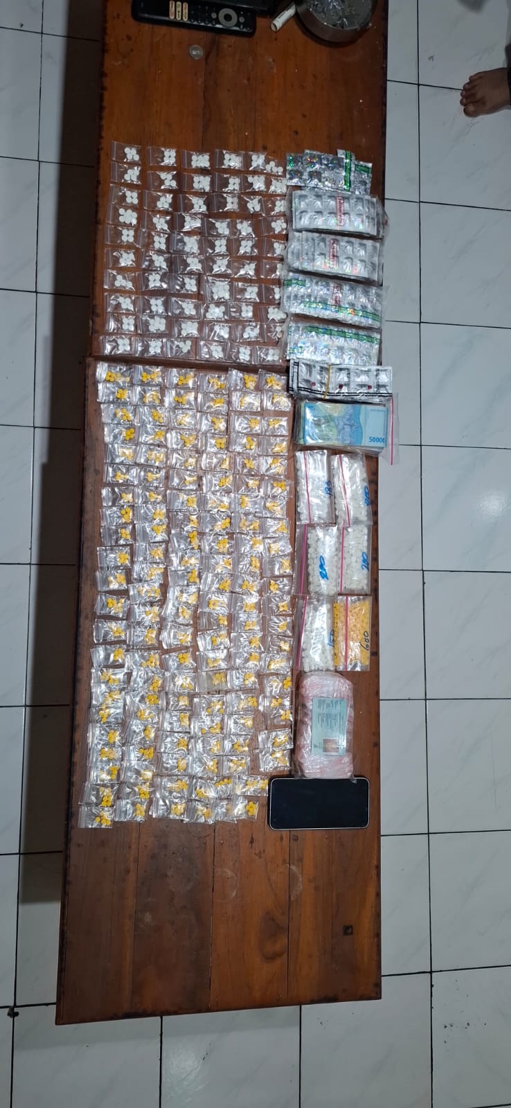 Lebih lanjut di jelaskan bahwa, dari hasil penggeledahan di lokasi pertama, petugas menemukan satu tas ransel berisi ribuan butir obat-obatan, yakni 1.231 butir Yarindo, 1.561 butir Hexymer, 66 butir Trihexyphenidyl, dan 429 butir Tramadol, serta sejumlah barang bukti lainnya berupa uang tunai, handphone, dan plastik klip.