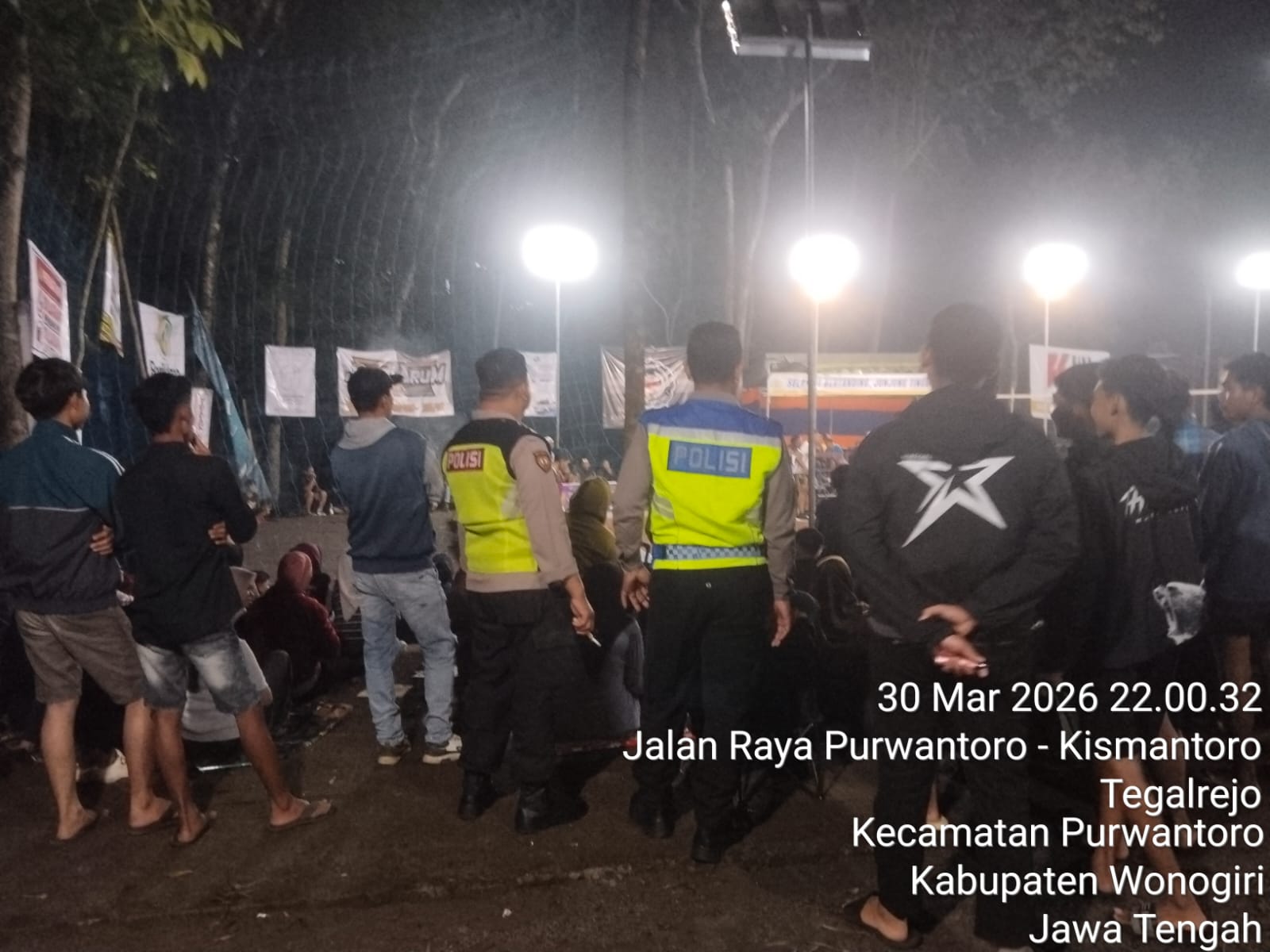 Wonogiri – Kepolisian Sektor (Polsek) Purwantoro melaksanakan pengamanan kegiatan Turnamen Bola Voli Putra Widyatama Cup I se-Distrik Purwantoro yang digelar di Lapangan Desa Bangsri, Kecamatan Purwantoro, Senin (30/3/2026) malam.