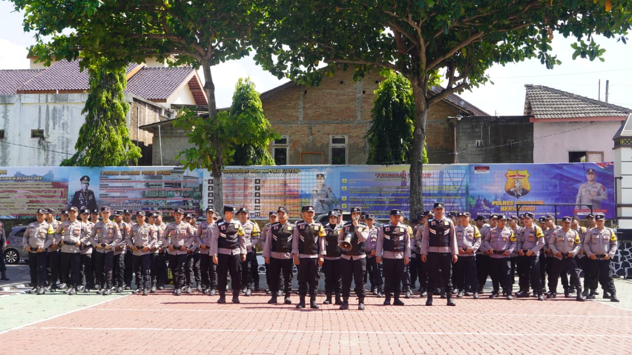 Wonogiri – Dalam rangka meningkatkan kesiapan menghadapi potensi dinamika sosial, Polres Wonogiri melaksanakan Apel Kesiapsiagaan Pengamanan Unjuk Rasa Tahun 2025, di halaman Mapolres, Rabu (15/10/2025)