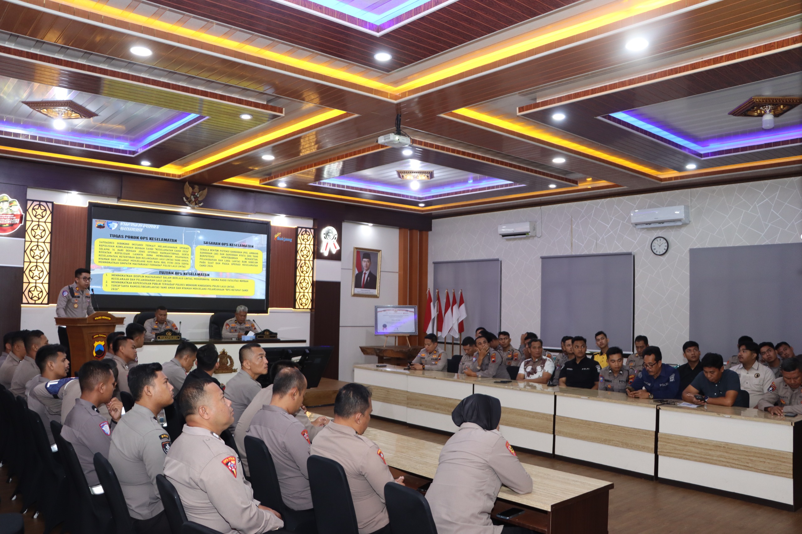 Kegiatan tersebut dilaksanakan pada Jumat (30/1/2026) pukul 09.40 WIB bertempat di Aula Sanika Satyawada Polres Wonogiri, dan diikuti oleh para pejabat utama, perwira, serta personel yang tergabung dalam Operasi Keselamatan Candi 2026.