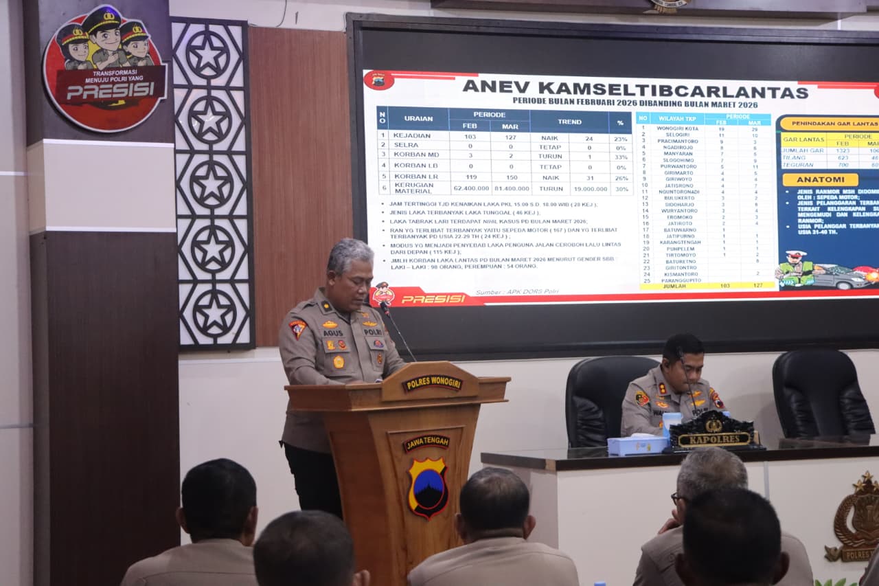 Wonogiri – Dalam rangka menjaga stabilitas keamanan dan ketertiban masyarakat (kamtibmas), Polres Wonogiri menggelar rapat koordinasi kesiapan antisipasi gangguan kamtibmas yang berimplikasi kontijensi Tahun 2026. Kegiatan berlangsung di Aula Sanika Satyawada Polres Wonogiri, Selasa (7/4/2026).