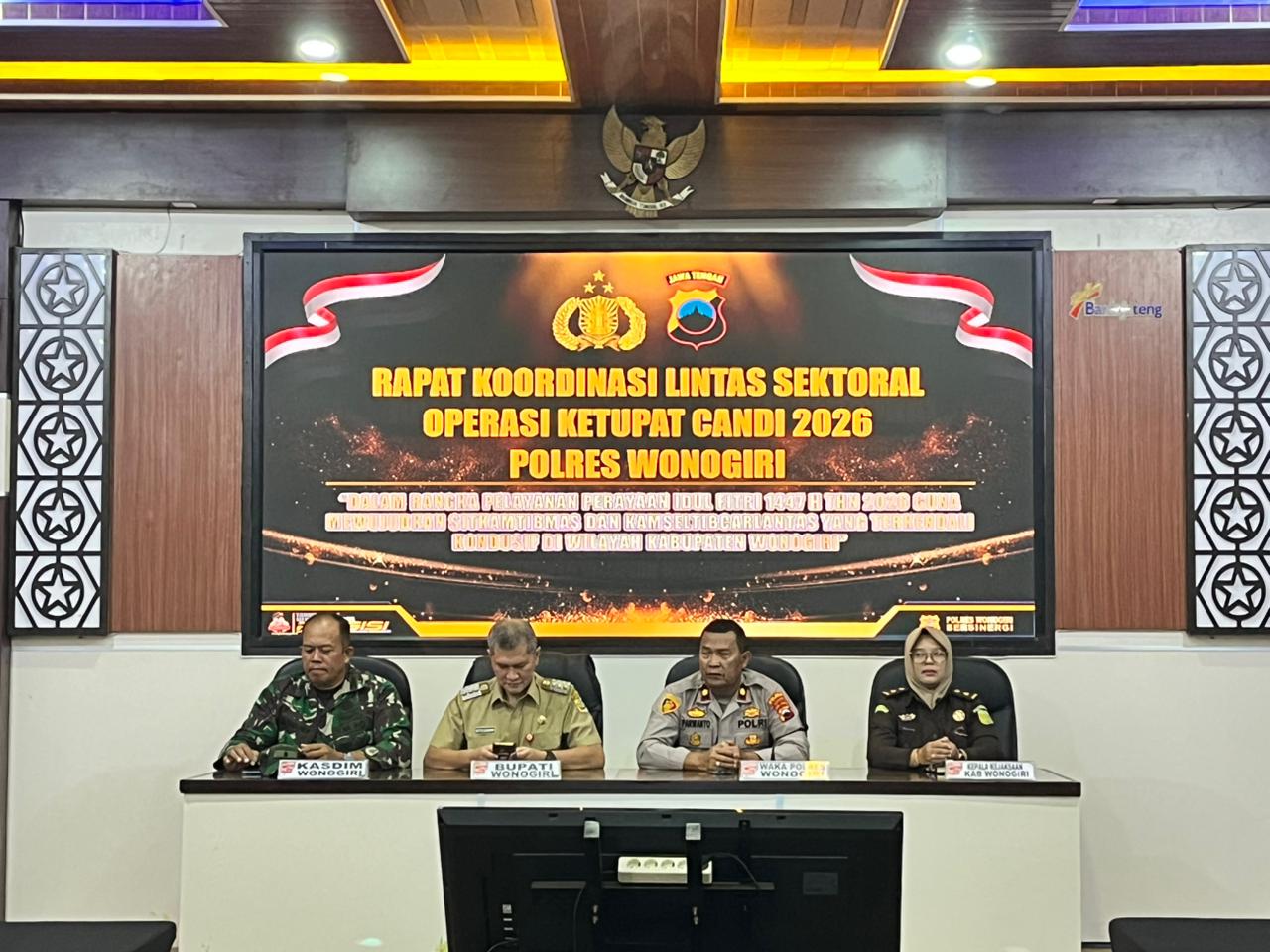Wonogiri – Polres Wonogiri mengikuti Zoom Meeting Rapat Koordinasi Lintas Sektoral (Rakor Linsek) Bidang Operasional tingkat Menteri dalam rangka kesiapan Operasi Ketupat 2026, Senin (2/3/2026) di Aula Sanika Satyawada Polres Wonogiri.