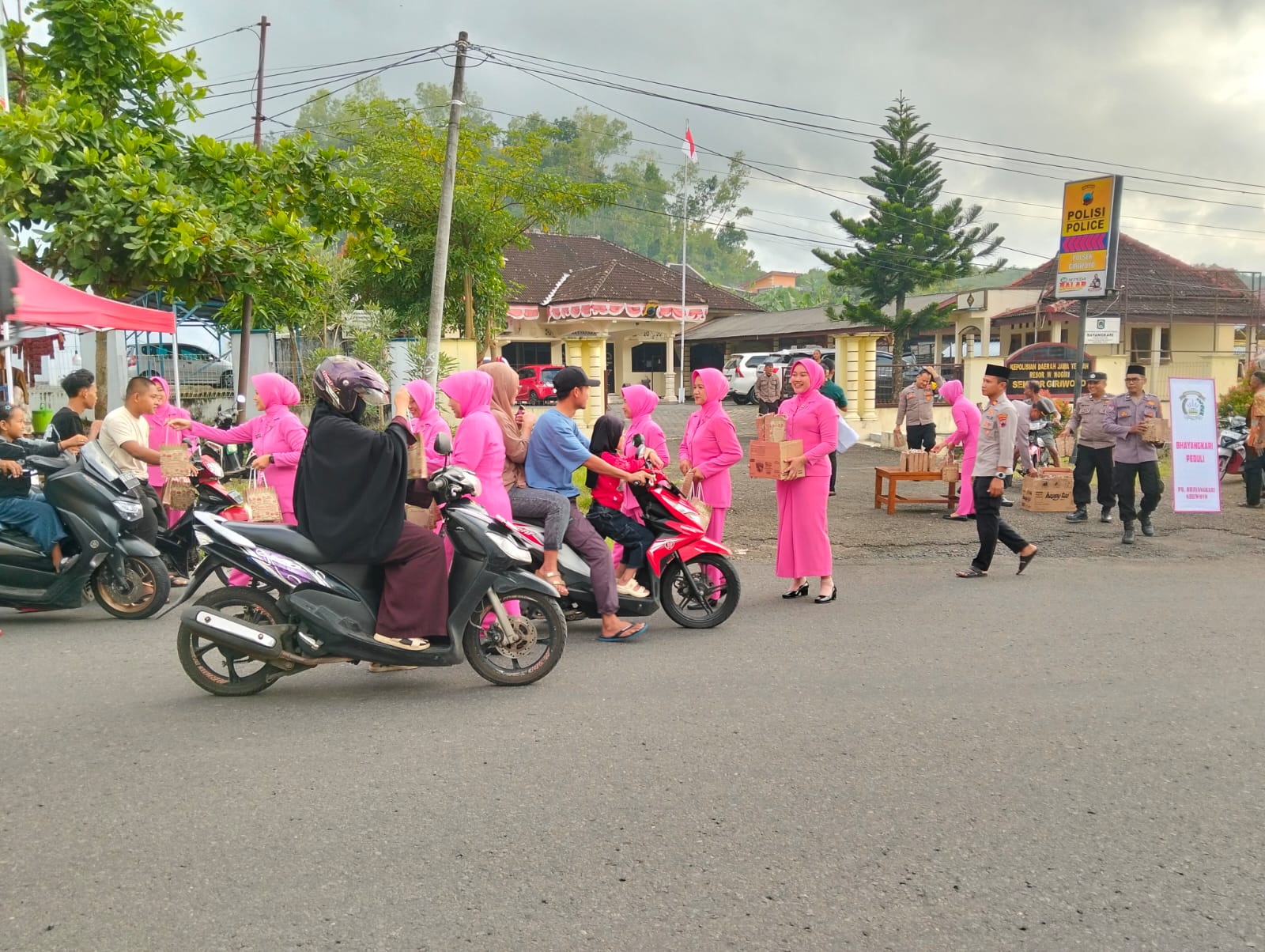 Kegiatan yang berlangsung sekitar pukul 16.30 WIB itu dilaksanakan di depan masing-masing Mapolsek dan di jalan raya yang ramai dilalui masyarakat. Personel Polsek bersama Bhayangkari membagikan ratusan paket takjil kepada para pengguna jalan dan warga sekitar menjelang waktu berbuka puasa.