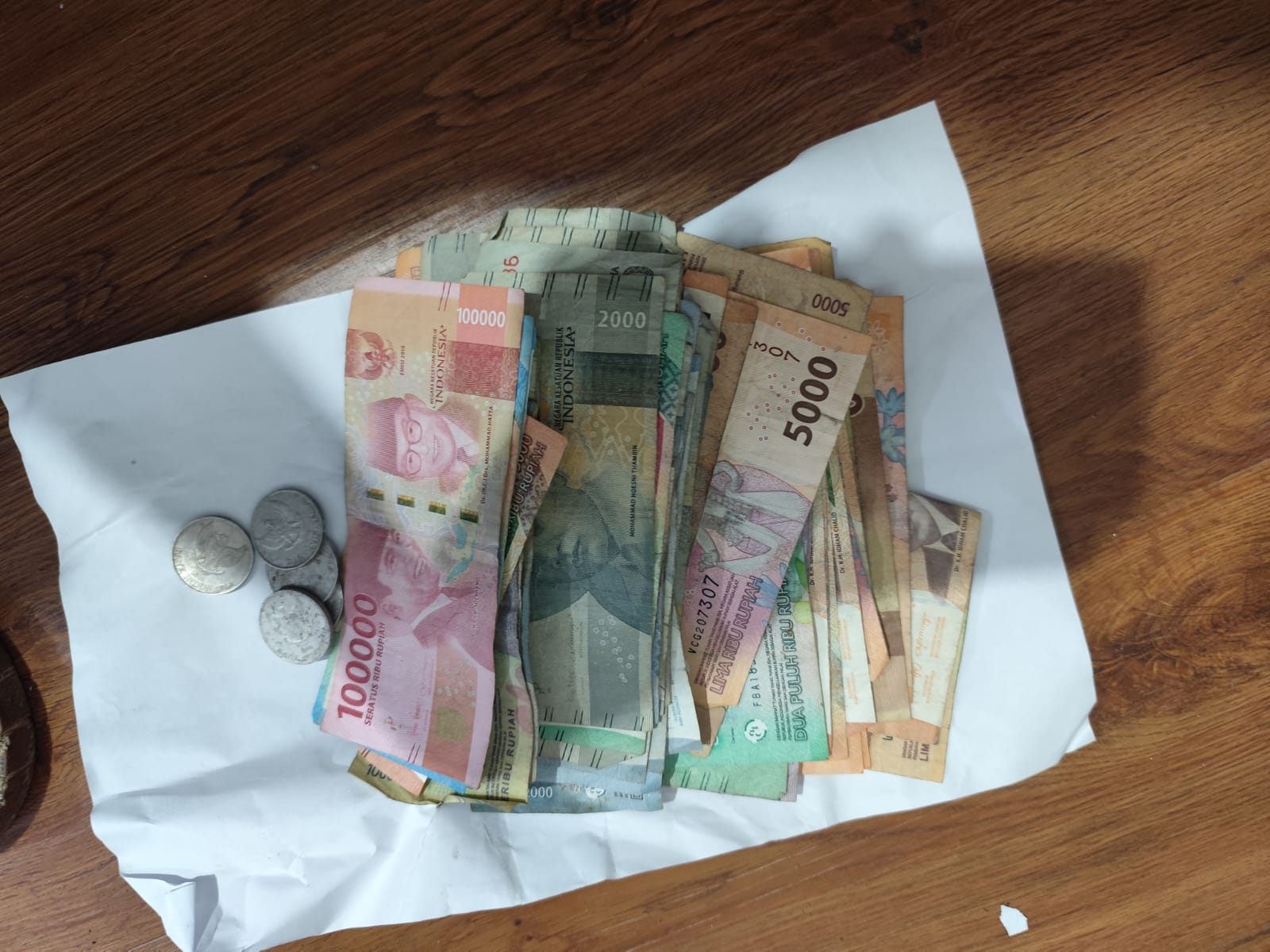 Dari lokasi kejadian, petugas mengamankan sejumlah barang bukti berupa tiga buah mata dadu, satu tutup dadu, satu lepek/tatakan, satu lembar beberan, satu tikar, serta uang tunai sebesar Rp508.500.