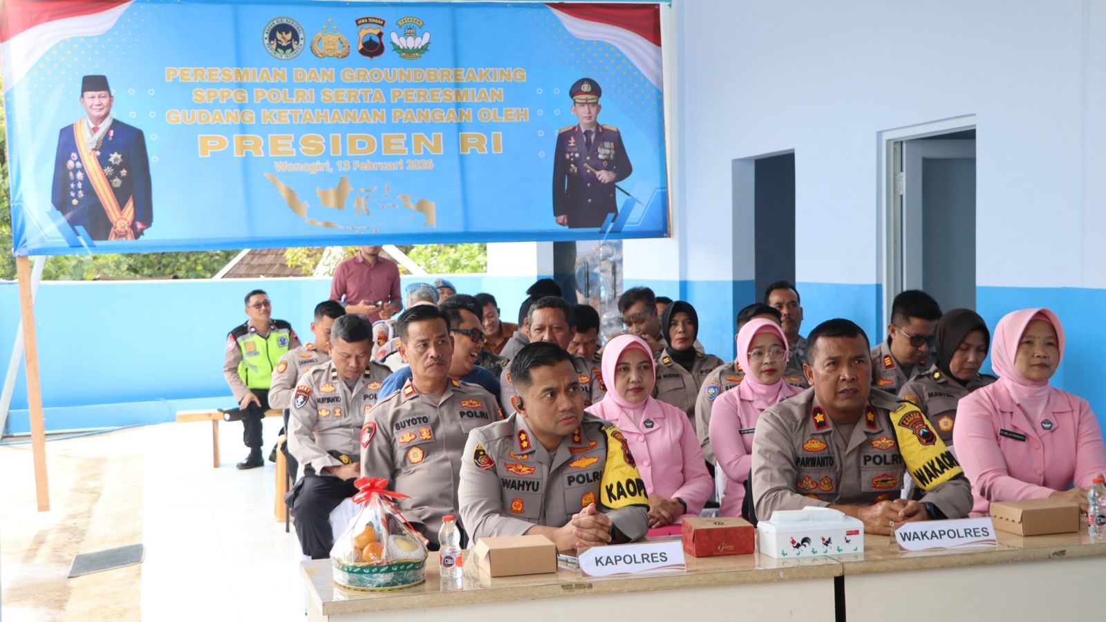 Wonogiri – Presiden RI Prabowo Subianto meresmikan dan melakukan groundbreaking Satuan Pelayanan Pemenuhan Gizi (SPPG) Polri serta Gudang Ketahanan Pangan melalui kegiatan terpusat yang diikuti secara virtual oleh jajaran kepolisian di seluruh Indonesia, Jumat (13/2/2026).