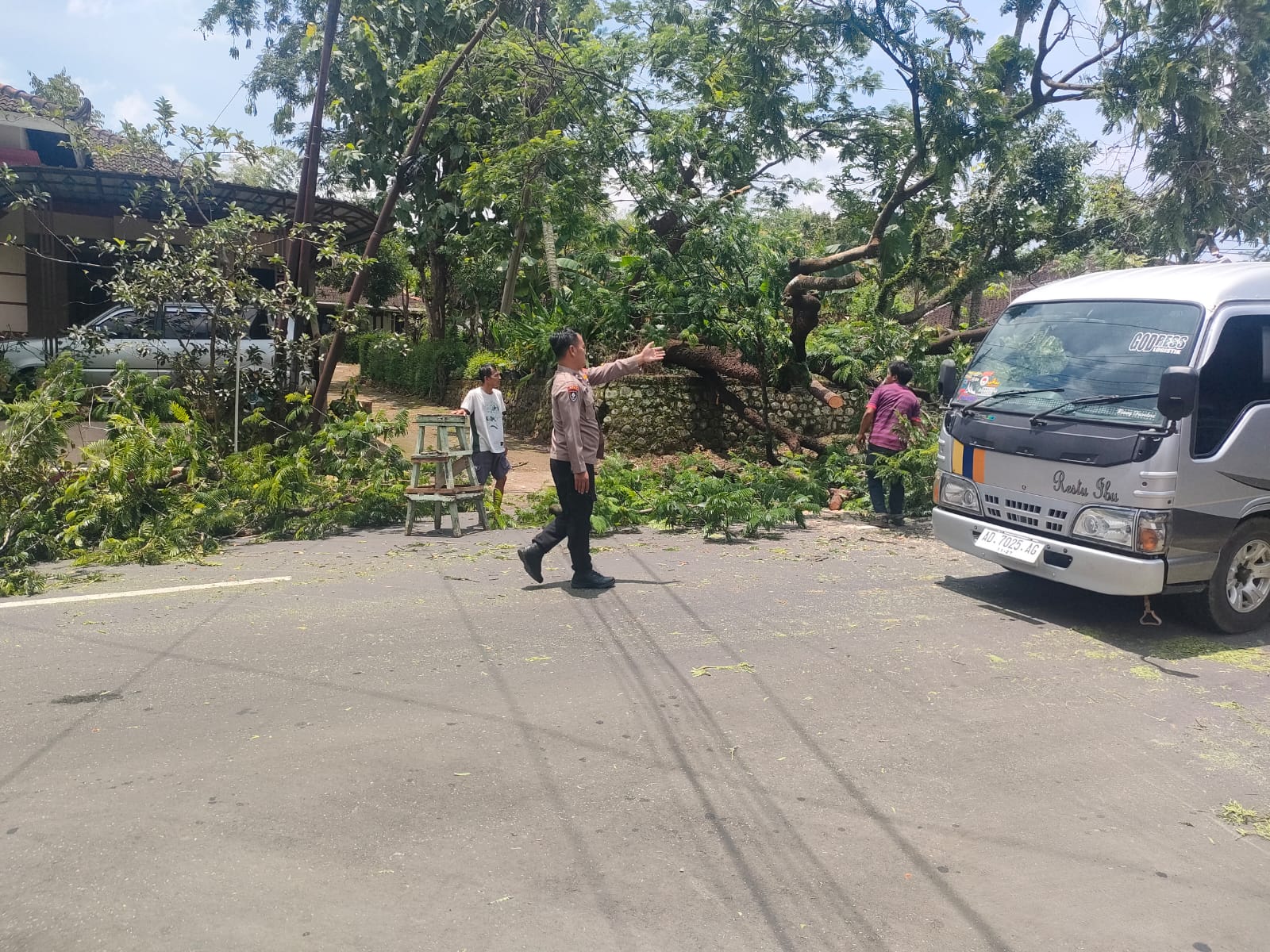 Menindaklanjuti laporan itu, petugas kepolisian segera menuju lokasi untuk melakukan pengecekan sekaligus pengamanan di tempat kejadian. Polisi kemudian berkoordinasi dengan Koramil Sidoharjo, BPBD Kabupaten Wonogiri, relawan, serta warga sekitar guna mempercepat proses evakuasi pohon yang menutup jalan.