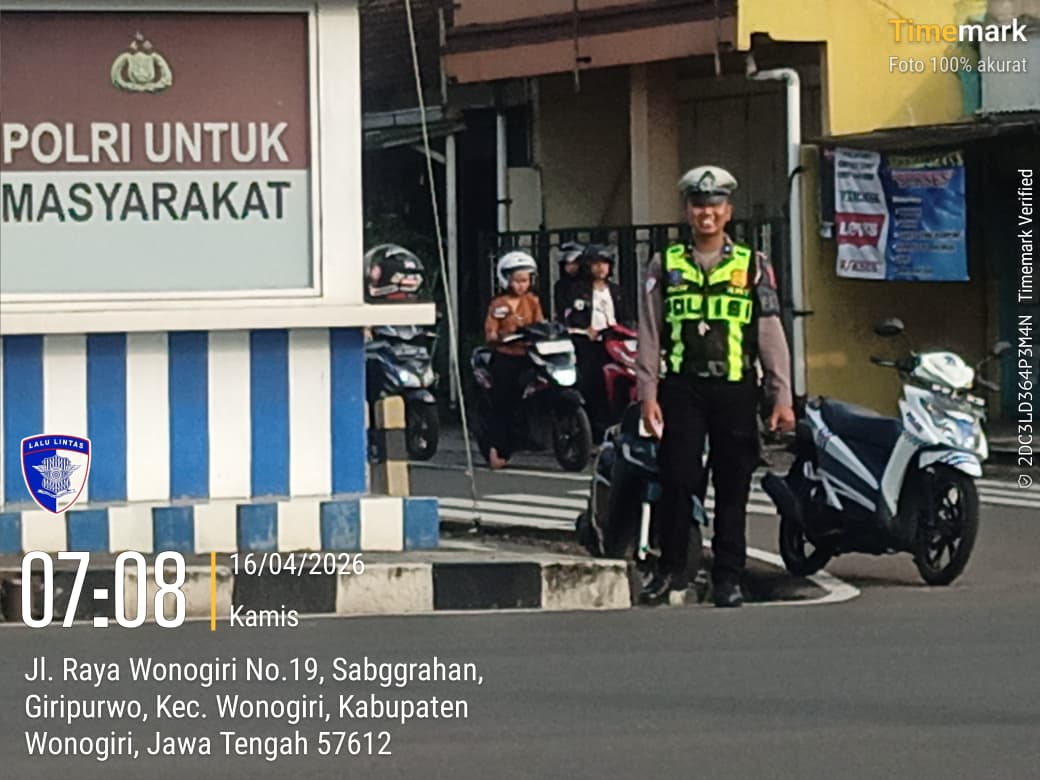 WONOGIRI – Satuan Lalu Lintas (Satlantas) Polres Wonogiri menggelar kegiatan pengamanan dan pengaturan arus lalu lintas (AG Pagi) di sejumlah ruas jalan utama, Kamis (16/4/2026). Kegiatan yang berlangsung mulai pukul 06.30 WIB hingga 07.30 WIB ini bertujuan menciptakan keamanan, keselamatan, ketertiban, dan kelancaran lalu lintas (kamseltibcar lantas).
