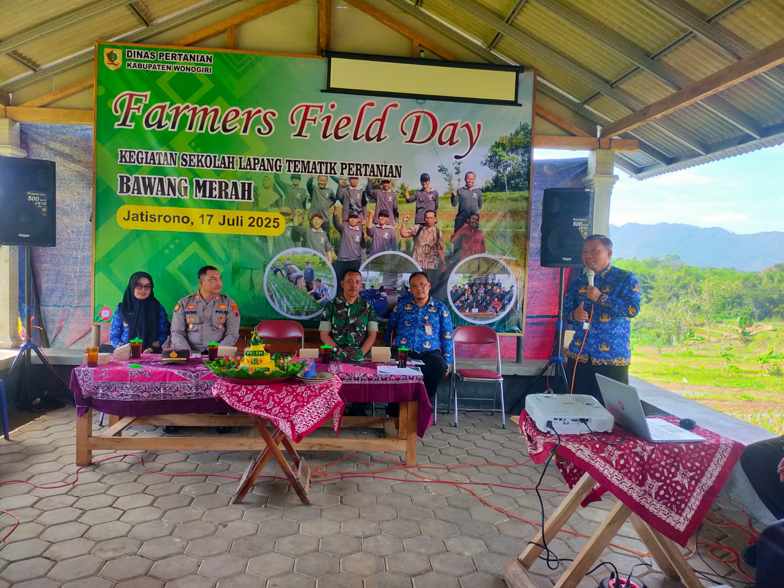 WONOGIRI – Komitmen Polres Wonogiri dalam mendukung ketahanan pangan terus diwujudkan, salah satunya melalui kehadiran Kapolsek Jatisrono AKP Yatno, S.H., dalam kegiatan Farmers Field Day Sekolah Lapang Tematik Pertanian Bawang Merah, dibalai pertemuan Kelompok Tani Sri Lestari di Kelurahan Pelem, Kecamatan Jatisrono, Kabupaten Wonogiri ini.(17 Juli 2025).