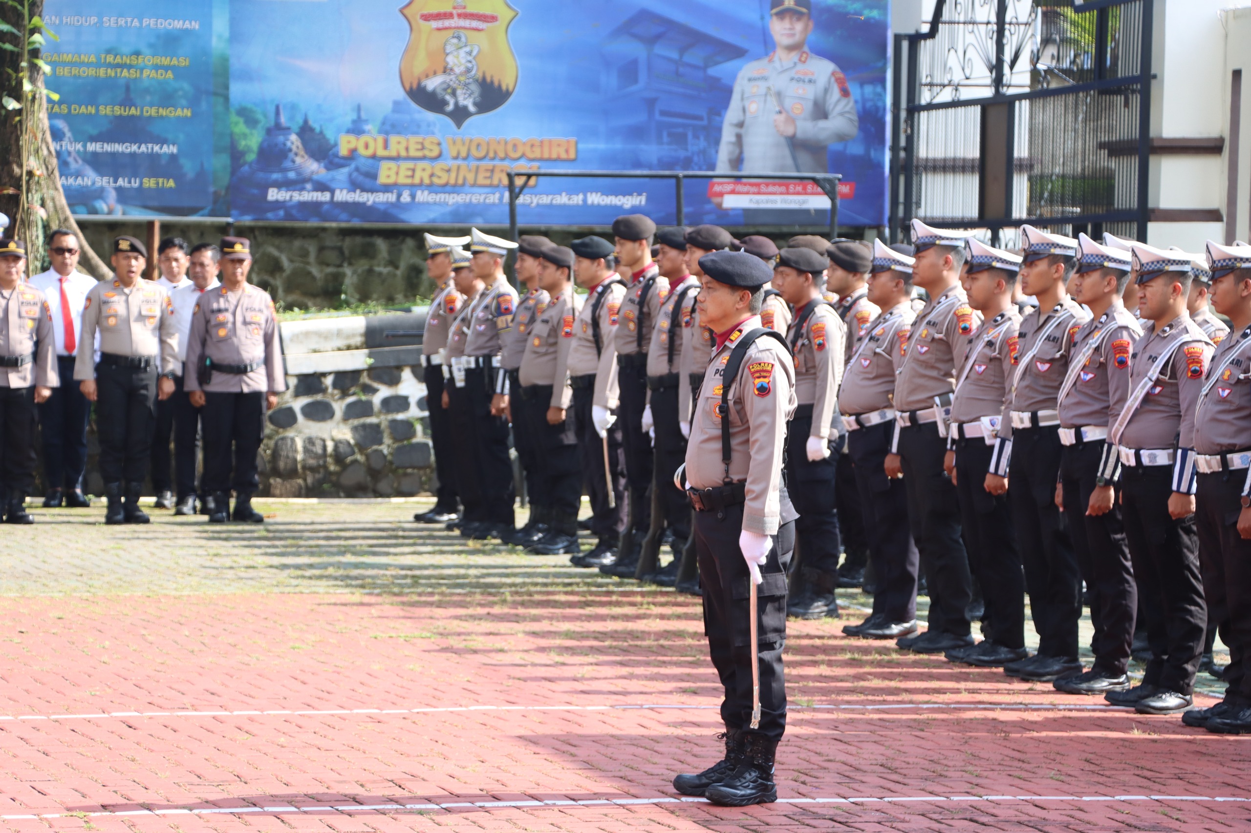 “Seluruh personel Polres Wonogiri saya tekankan untuk terus meningkatkan profesionalisme, integritas, dan loyalitas dalam pelaksanaan tugas. Laksanakan tugas secara humanis, sesuai aturan hukum yang berlaku, serta hindari segala bentuk pelanggaran yang dapat merusak citra Polri,” tegas AKBP Wahyu Sulistyo.